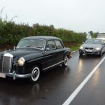 A par une petite fuite d’essence (durite desserrée )vite réparée lors d’une visite de cave à Irancy sur le trajet aller et une crevaison en arrivant à Moulins, la Mercedes s’est révélée être une formidable compagne de voyage: confortable, rapide et très agréable à conduire sur les nationales et départementales françaises. L’an prochain, elle repartira pour un trajet Belgique – Côte d’Azur et retour avec nos amis de la Nationale 7 !