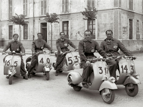 Enrico Piaggio rêve d’un véhicule économique et pratique, capable de mettre sur roues l’Italie des années ’50. Il demande à Corradino D’Ascanio, un ingénieur aéronautique, de se charger du dessin. Etranger au monde de la moto il innovera en montant le moteur et la boîte directement sur la roue arrière ce qui dégage un espace plat pour les jambes. L’engin est simple, facile à conduire et à entretenir et le fait de ne pas devoir enjamber un cadre le rend utilisable par un homme comme par une femme, sans se salir. Devant le premier prototype, Enrico Piaggio s’esclaffe « on dirait une guêpe! ». « Vespa » en italien. L’engin vient de trouver son nom, il trouvera vite son public !
